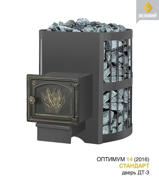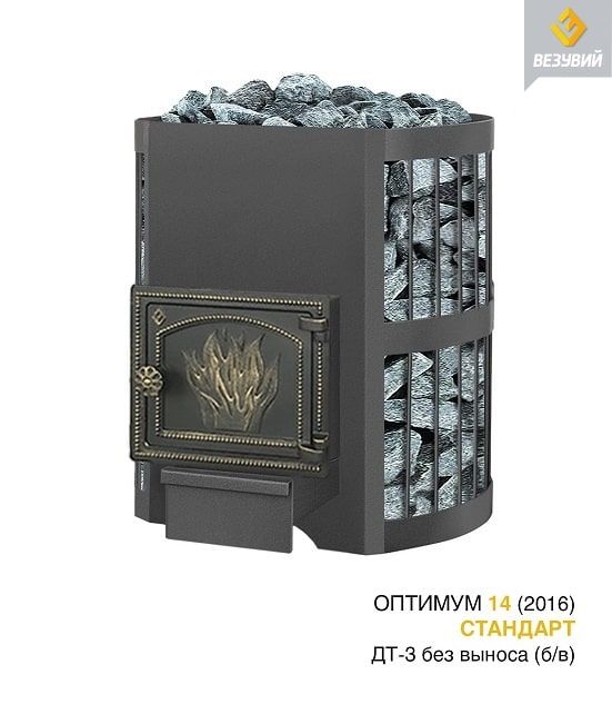 Оптимум Стандарт - банная печь от компании "Везувий", способная прогреть парильное помещение объемом от 6 до 14 м3.